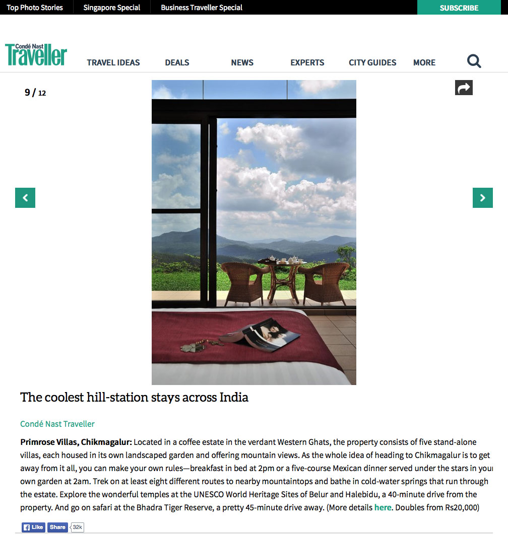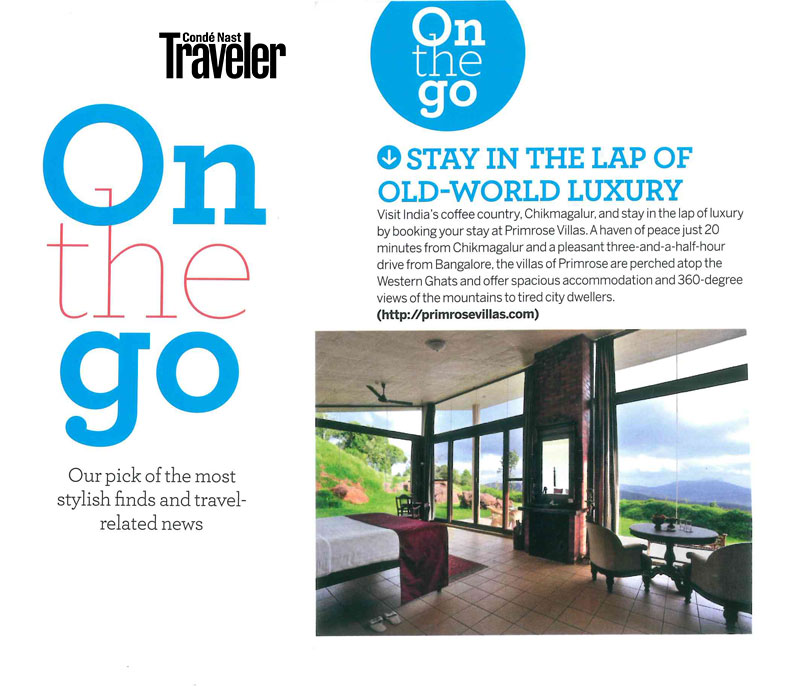 The residences at Primrose Villas are a haven of peace tucked away on the mountain tops of the Western Ghats in India, right next to the town of Chikmagalur, a pleasant three-and-a-half hour drive from Bangalore.